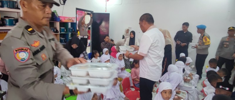 Setelah itu, rombongan menuju TK Kemala Bhayangkara 25 Kendari untuk membagikan 70 paket makanan bergizi kepada siswa. Menu yang disajikan meliputi nasi putih, daging ayam, mi goreng, sayur, telur goreng, tahu, tempe, dan susu.
