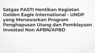 Satgas PASTI Hentikan Kegiatan Golden Eagle International – UNDP (Golden Eagle) yang Menawarkan Program Penghapusan Utang dan Pembiayaan Investasi Non APBN/APBD
